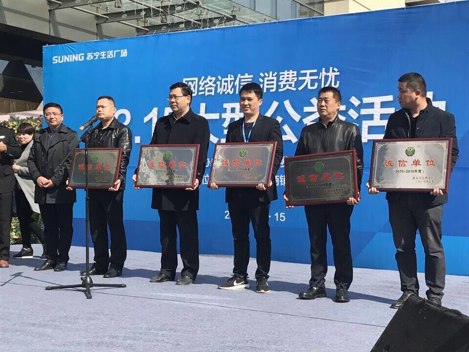 据悉,在盱眙县苏宁生活广场,县市场监督管理局对荣获省市“诚信单位”称号的相关单位进行了现场授牌。(盱眙县信用办朱建芹)